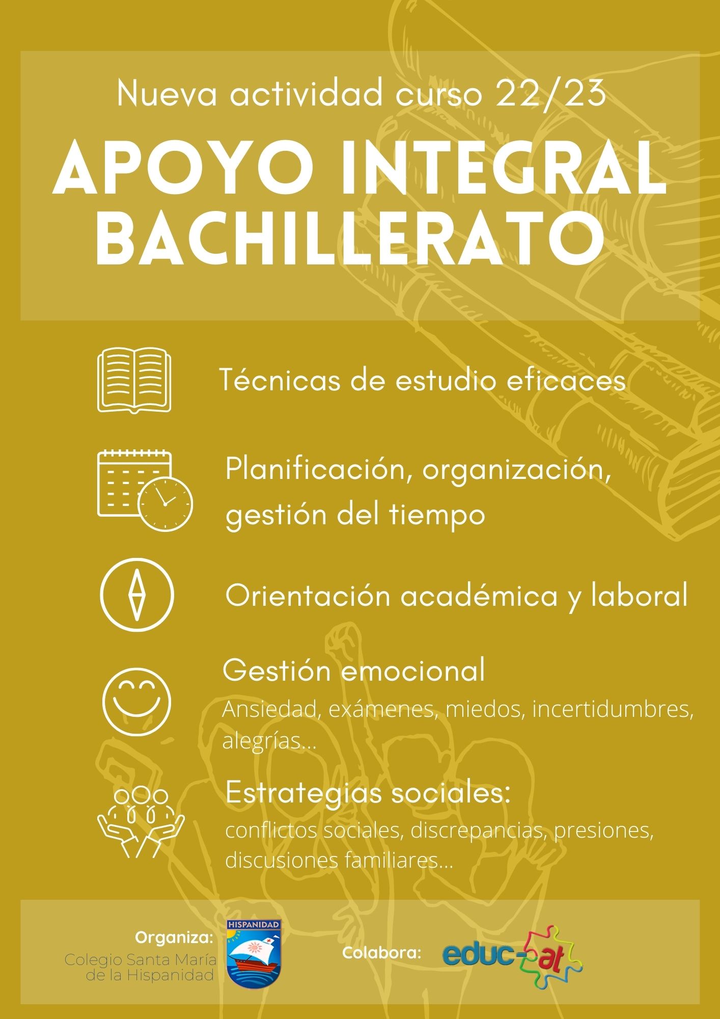 Dependiendo de la demanda y en caso de que los alumnos lo necesiten, pueden optar a clases de repaso específicas o sesiones de estudio dirigido por profesores del Centro, tanto en los niveles de primaria como de secundaria. La idea es que aquellos alumnos que, bien porque desean aprovechar un tiempo, o bien porque necesitan un refuerzo didáctico, puedan acceder a este servicio en su propio colegio.